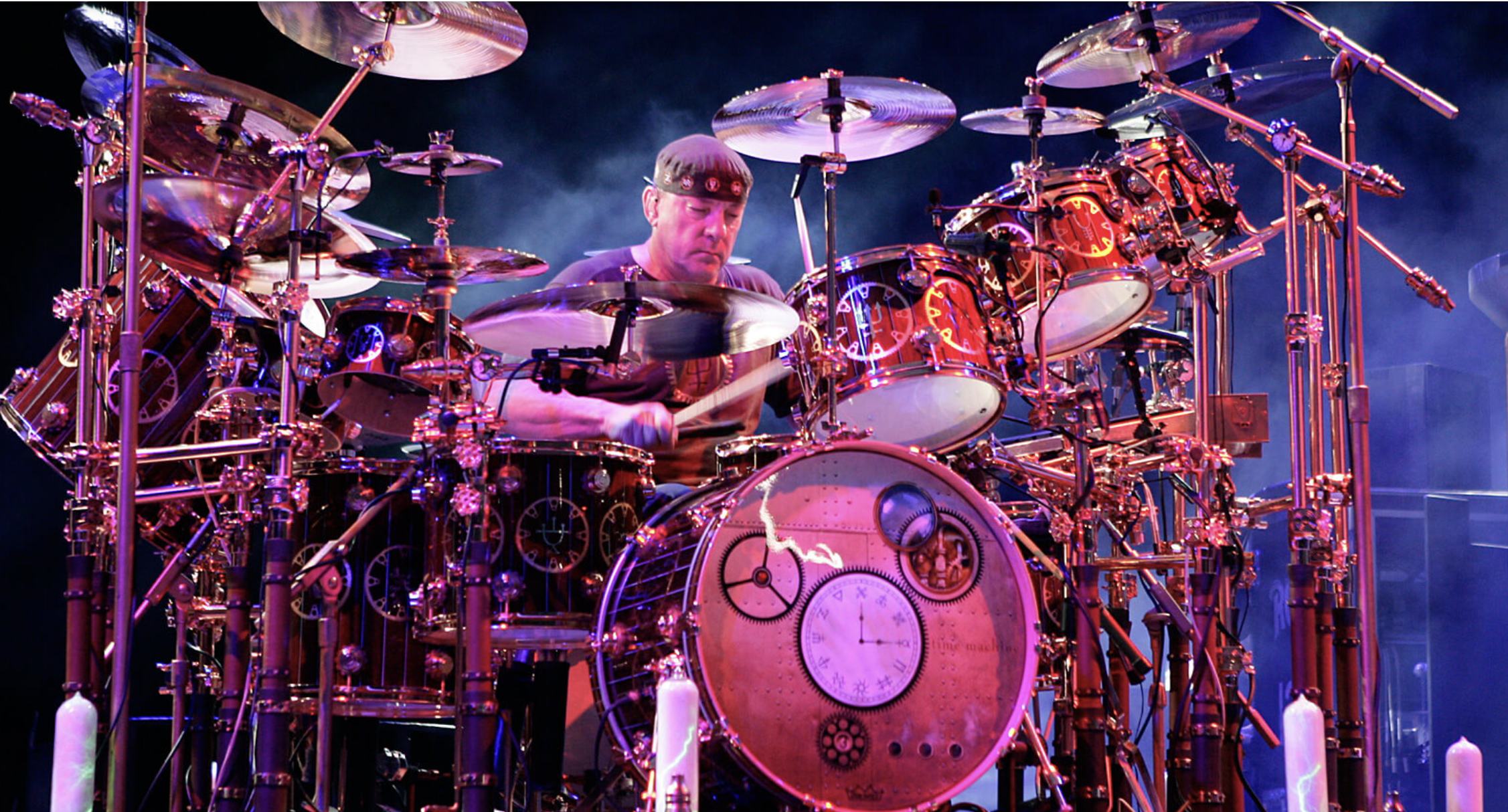 Peart and Rush experienced immeasurable success throughout his forty-plus-year tenure with Rush. The group released twenty-four gold albums (for 500,000 units sold), fourteen of which went platinum (1,000,000), and three of which went multi-platinum. A brief summary of the band’s honors includes induction into the American Rock and Roll Hall of Fame and the Canadian Music Hall of Fame; numerous Grammy nominations; nine Juno music awards; and an admission into the Officers of the Order of Canada, Canada’s second-highest sovereign honor. And in 2014, MD’s readers ranked Peart third best among the top fifty greatest drummers of all time—behind only Buddy Rich and Led Zeppelin’s John Bonham. It’s easy to see why Peart ranks so highly among the legends. His playing on Rush songs like “Free Will,” “Limelight,” and “Subdivisions” inspired generations of drummers to pick up the sticks. He was a master at making odd time signatures feel right at home on an FM dial. And while Peart didn’t invent the rock drum solo, he certainly refined and expanded the art over the years touring with Rush. Devotees pore over the evolution of “the Professor”’s elaborate live drum setups. And even those who’ve never sat down at a kit found themselves air-drumming to Peart’s parts.
